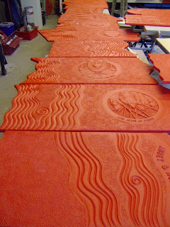 The original sketch drawings have been modeled in low relief. These will be cast and included in the patterns for the cast iron time Line sections.